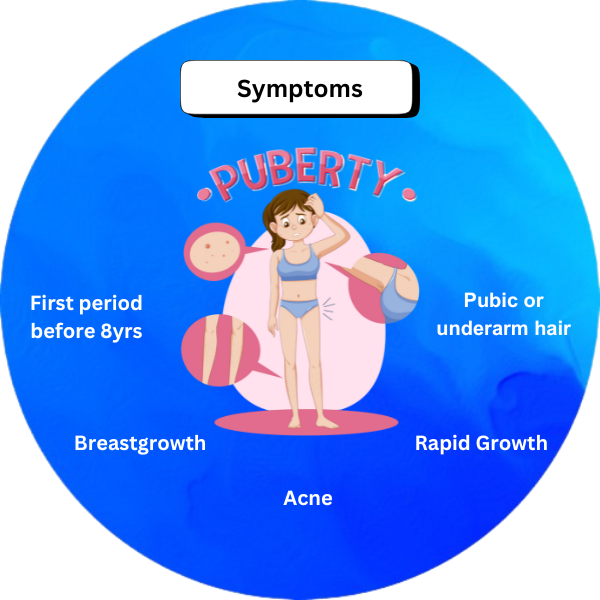 • Early Menstruation Symptoms: Menstrual cycles beginning before the age of 8.