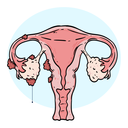 Endometriosis is a condition in which the tissue that typically lines the uterus (endometrium) starts growing outside the uterus. This tissue can develop on the ovaries, fallopian tubes, or other parts of the pelvic region.
